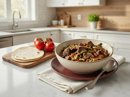 ![]() Final Magazine Layout – Caldo Ardiente y Cremoso TlalpeñoWarm, immersive InDesign spread: steaming broth glow, layered garnishes, tortilla crisp contrast, and subtle Beneficio product flow—comfort in a bowl, elevated for the reader. |